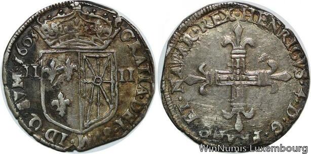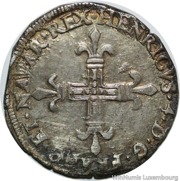 R9526 Rare 1/4 Ecu Navarre Henri IV 1603 Saint-Palais Silver -> Make offer