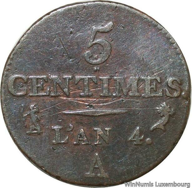 R9538 Rare 5 Centimes Dupré Petit Module an 5 A Paris 1796 -> Make offer