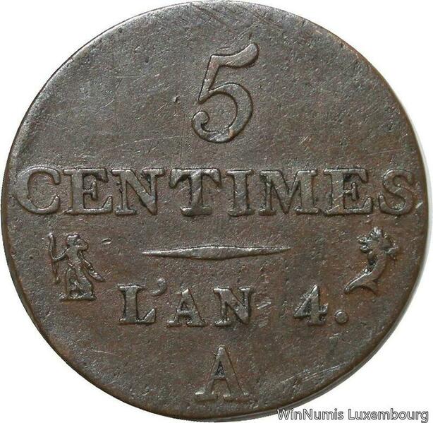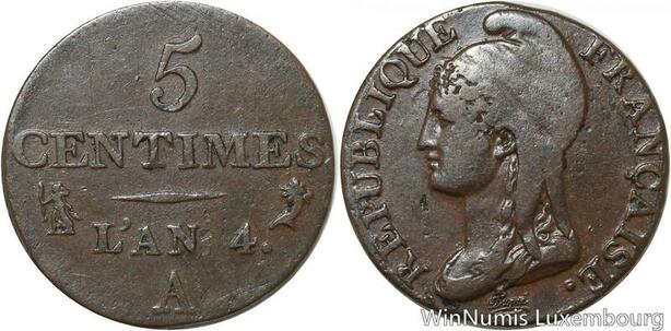 R9539 Rare 5 Centimes Dupré Petit Module an 5 A Paris 1796 -> Make offer