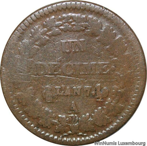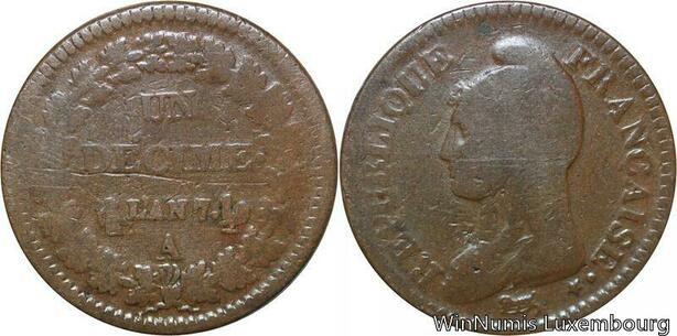 R9541 Un Décime Dupré an 7 A Paris variété avec accent 1798 -> Make offer