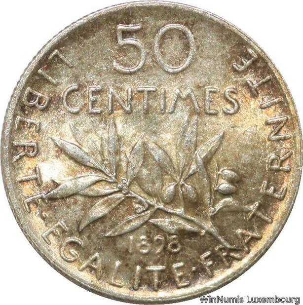 R9562 Rare 50 Centimes Semeuse Argent 1898 BU UNC -> Make offer