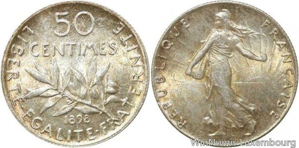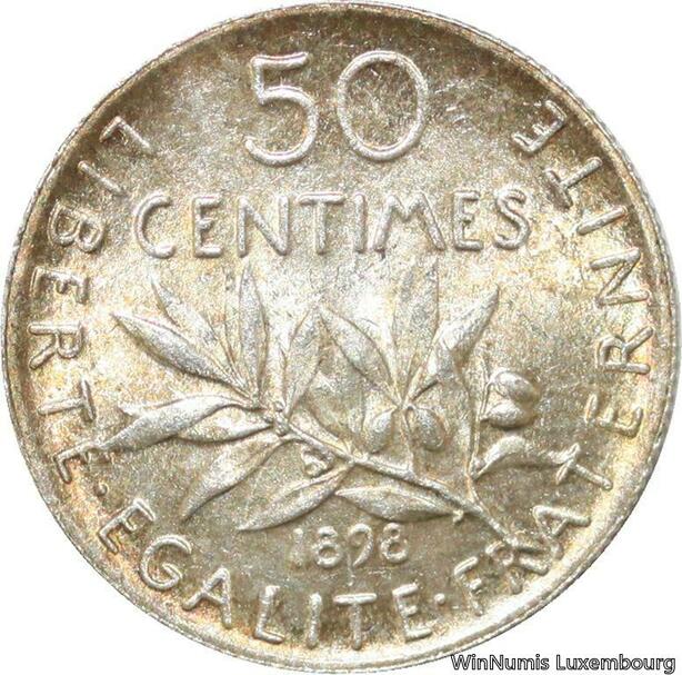 R9564 Rare 50 Centimes Semeuse Argent 1898 BU UNC -> Make offer