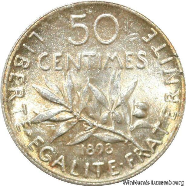 R9565 Rare 50 Centimes Semeuse Argent 1898 BU UNC -> Make offer