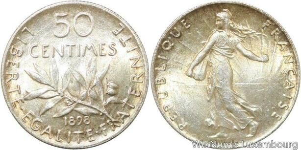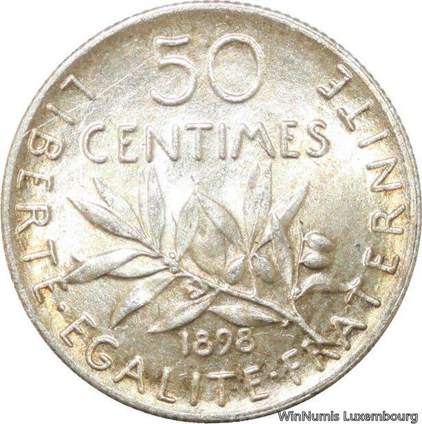 R9566 Rare 50 Centimes Semeuse Argent 1898 BU UNC -> Make offer