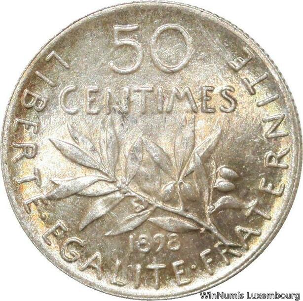 R9568 Rare 50 Centimes Semeuse Argent 1898 BU UNC -> Make offer