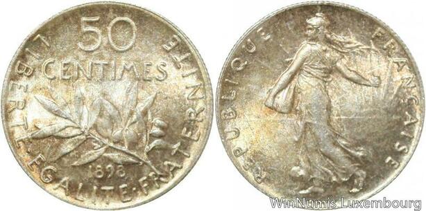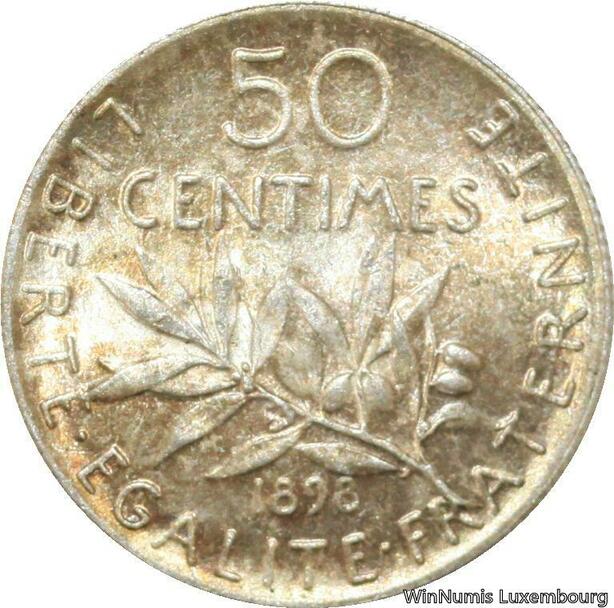 R9569 Rare 50 Centimes Semeuse Argent 1898 BU UNC -> Make offer
