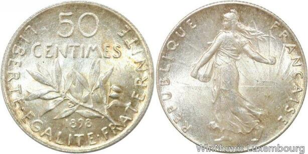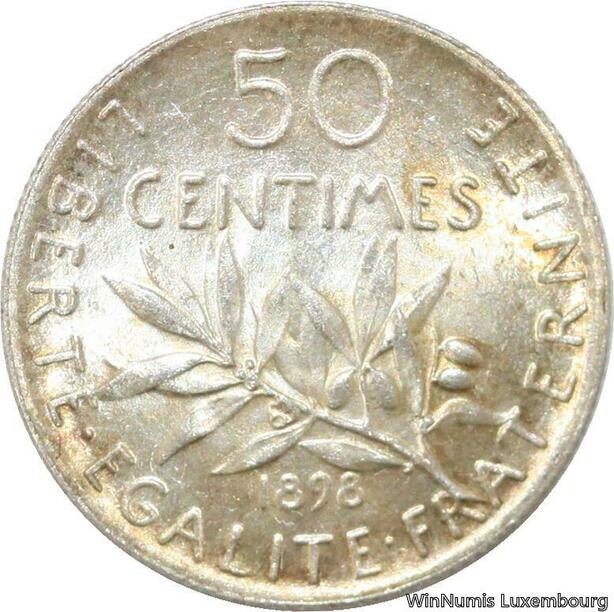 R9570 Rare 50 Centimes Semeuse Argent 1898 BU UNC -> Make offer