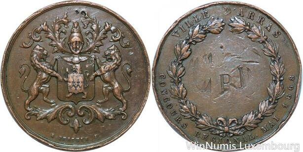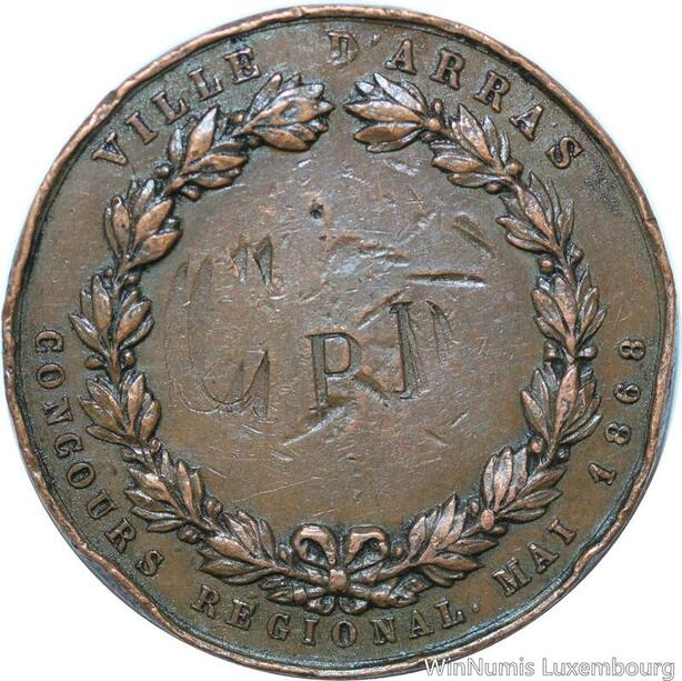 R9575 Médaille Artois Concours National Napoléon III 1868 Arras Contremarque CRI