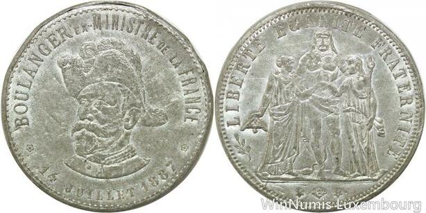 R9581 Rare Module Propagande 5 Francs Hercule Général Boulanger 1887 SUP ->Offer