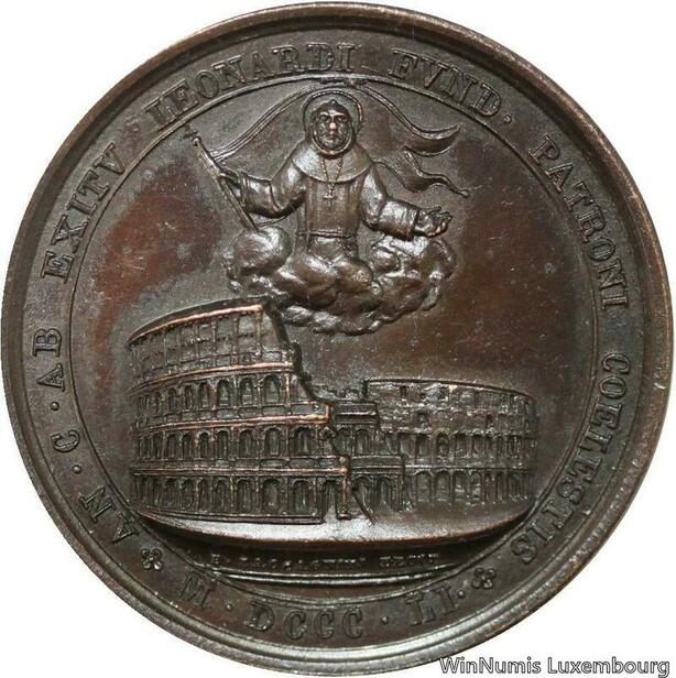 R9586 Rare Medal Papal Vatican Pius IX Amphithéâtre Flavien Zaccagnini 1851 UNC