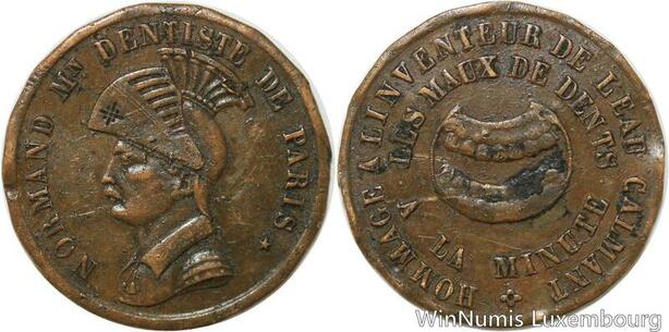 R9590 Jeton Dentiste Inventeur Eau Calmante Mal de Dents Paris c.1880