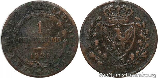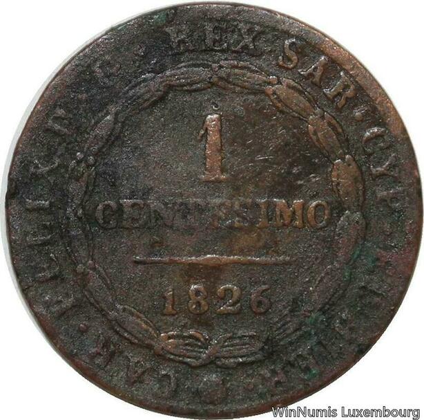 R9645 Italy Sardinia 1 Centesimo Carlo Felice 1826 L Turin -> Make Offer
