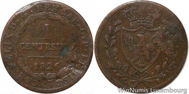 R9648 Italy Sardinia 1 Centesimo Carlo Felice 1826 P Turin -> Make Offer