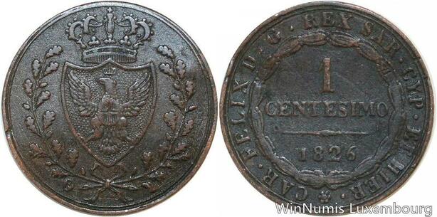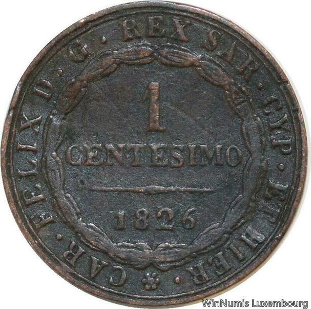 R9650 Italy Sardinia 1 Centesimo Carlo Felice 1826 P Turin -> Make Offer