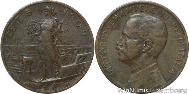 R9654 Italy 5 Centesimi Vittorio Emanuel III 1909 R Roma -> Make Offer