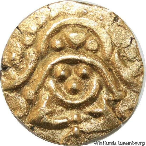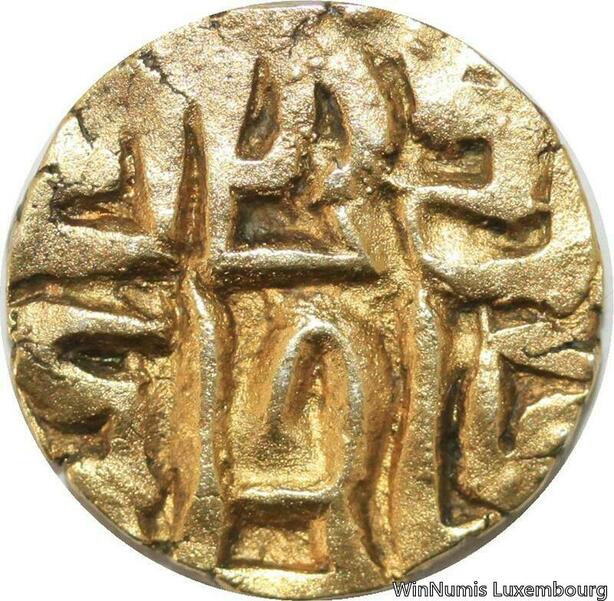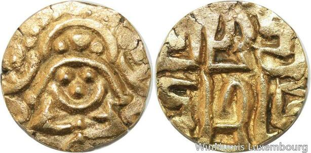 R9659 Very Rare India Debase 4 1/2 Masha Or Gold Goddess lakshmi Kanauj 1100 AU