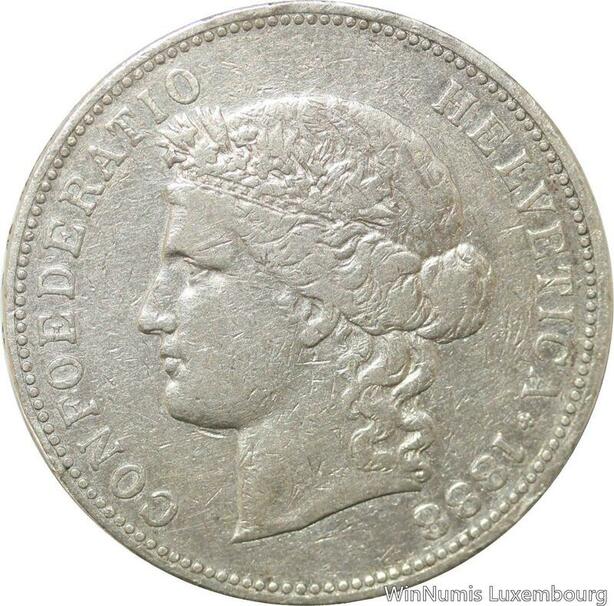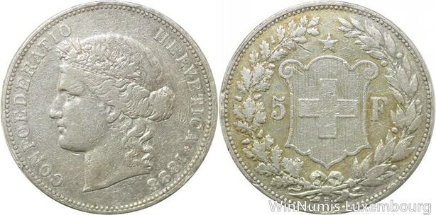 R9662 Rare Switzerland 5 Francs Confederatio Helvetia 1888 B Berne Silver >Offer