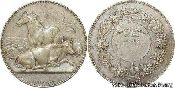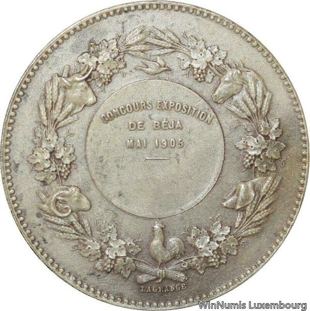 R9691 Médaille Colonie Tunisie Concours Expo Bétail Cheval Boeuf 1905 Argent SUP