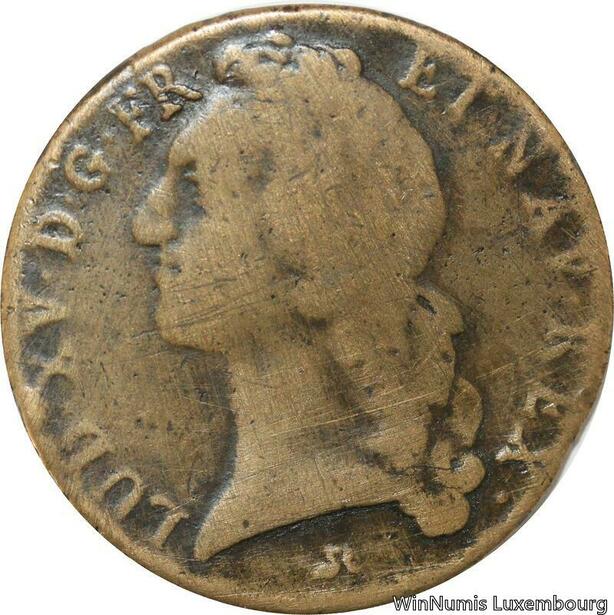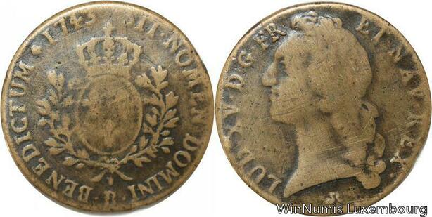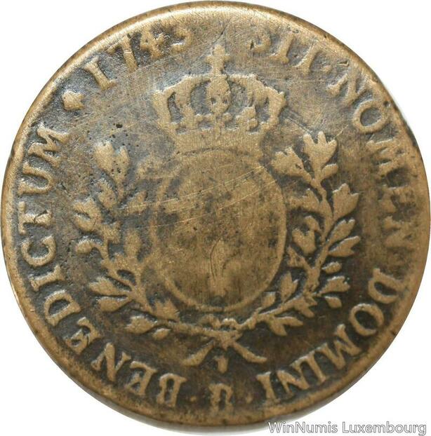 R9697 Faux d'époque Ecu bandeau Louis XV 1743 B Rouen Bronze -> Make Offer