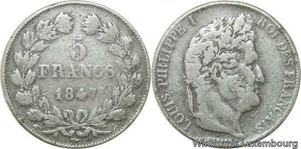 R9700 Faux d'époque France 5 Francs Louis Philippe 1847 A Paris Plomb