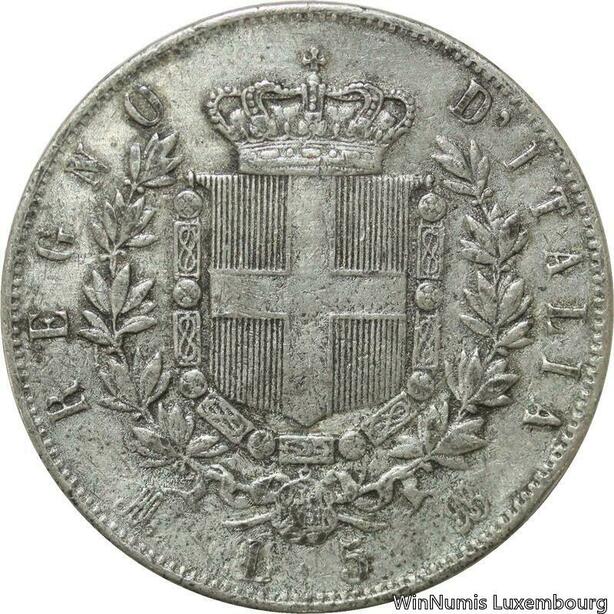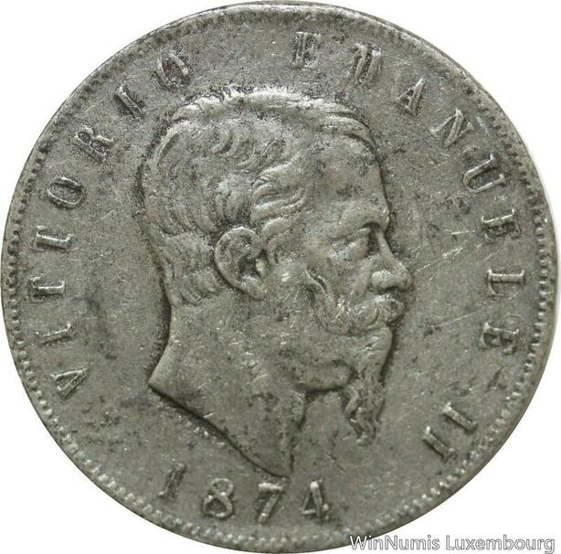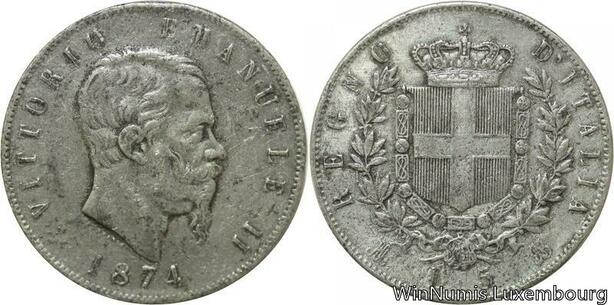 R9713 Old counterfeit Italy 5 Lire Vittorio Emanuele II 1874 M Milan Lead >Offer