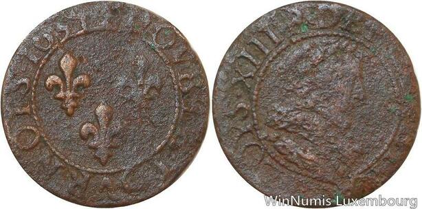 R9719 Double Tournois Louis XIII buste juvenile col fraisé 1631 A Paris -> Offer