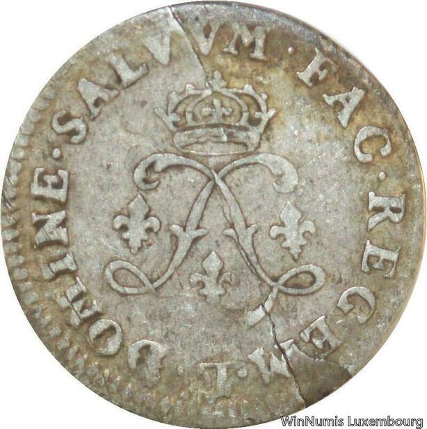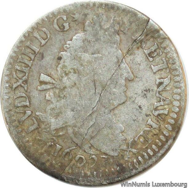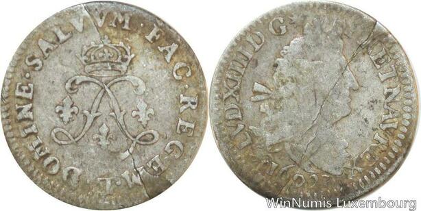 R9745 Rare Inedit ? 4 Sols aux 2 L Louis XIV 1692 Atelier T Nantes? Argent