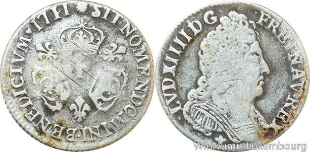 R9748 1/10 Ecu Louis XIV 1711 T Nantes Argent Silver -> Make Offer
