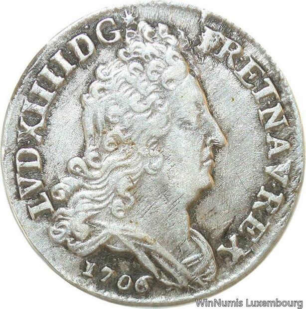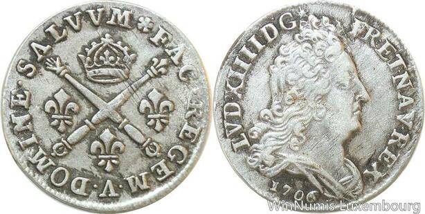 R9749 Rare 10 Sols aux Insignes Louis XIV 1706 A Paris Argent Silver SUP ->Offer