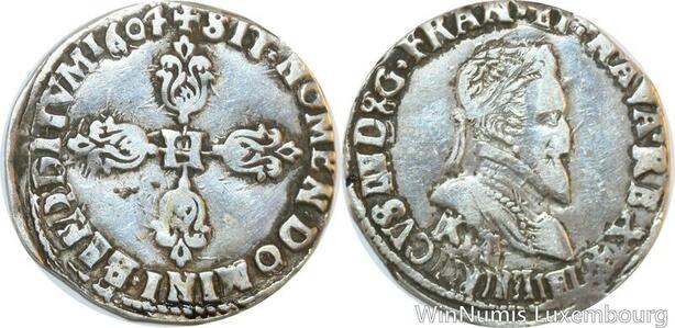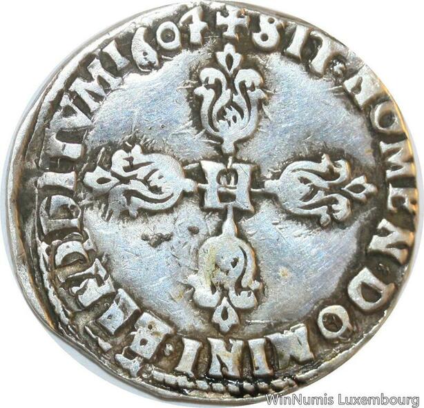 R9771 Rare Demi Franc Henri IV 1604 K Bordeaux Argent Silver TTB+ -> Make offer