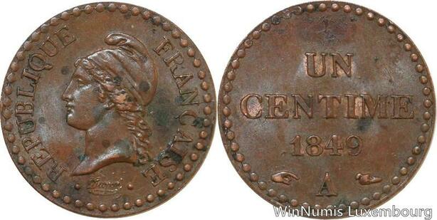 R9816 Rare Un Centime Dupré 1849 A Paris République point UNC -> Make offer