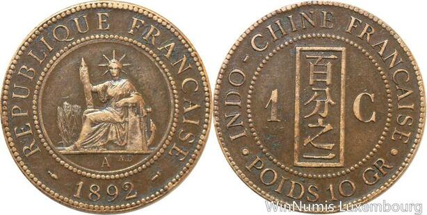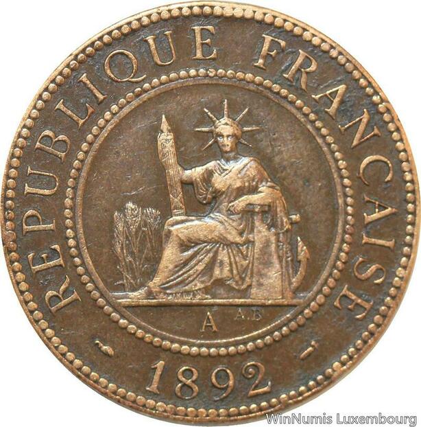 R9823 French Indochina 1 Cent Liberty 1892 A Paris ->Make offer