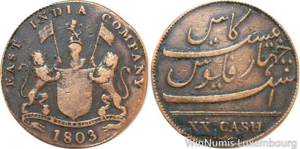 R9825 British India Madras Presidency 20 Cash 1803 -> Make Offer