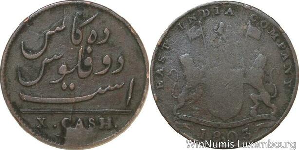 R9828 British India Madras Presidency 10 Cash 1803 -> Make Offer