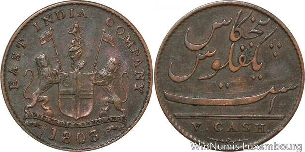 R9832 Rare British India Madras Presidency 5 Cash 1803 -> Make offer