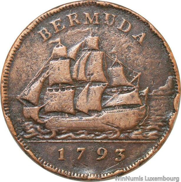 R9836 Rare Bermuda Penny George III 1793 Sailing ship -> Make offer