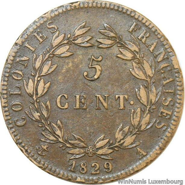 R9849 Rare French Colonies Guadeloupe 5 Centimes Charles X 1829 A Paris SUP