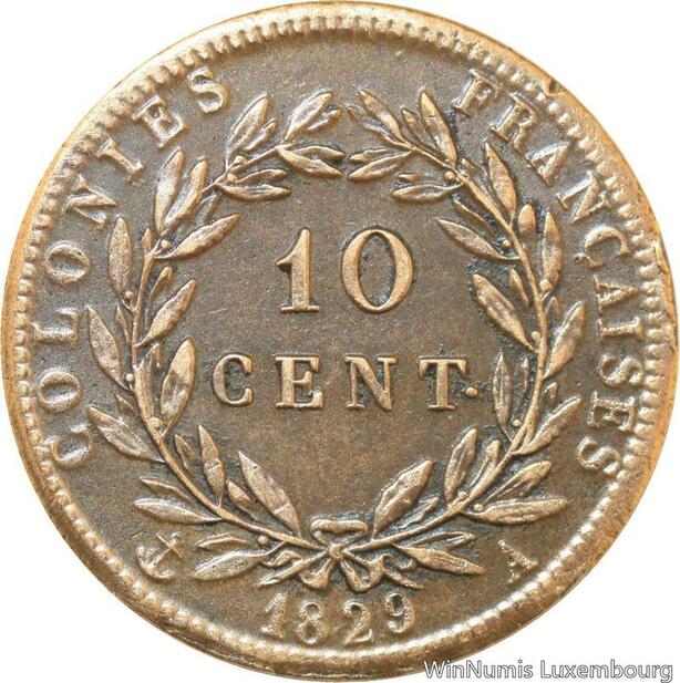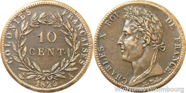 R9850 Rare French Colonies Guadeloupe 10 Centimes Charles X 1829 A Paris SUP