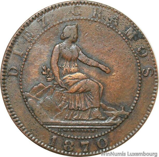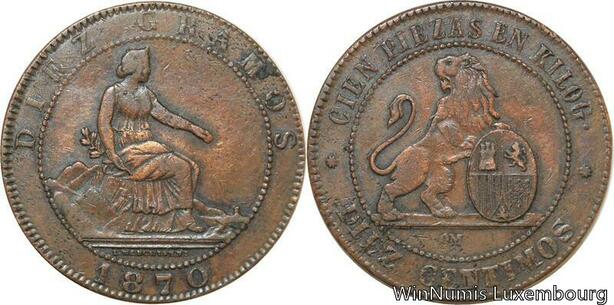 R9893 Spain 10 Centimos Provisional Government 1870 OM -> Make Offer