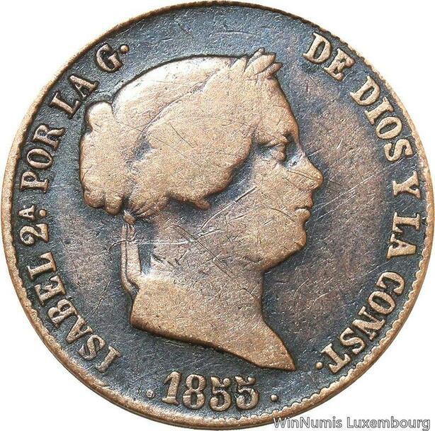 R9898 Spain 25 Centimos Real Isabel II 1855 Aqueduct Segovia -> Make Offer
