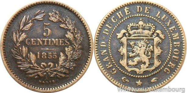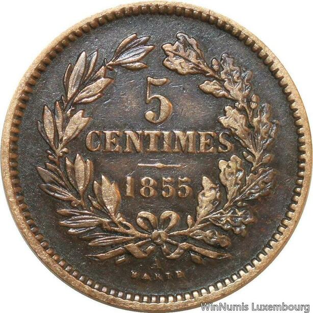 R9922 Luxembourg 5 Centimes Willem III 1855 A Paris Barth -> Make Offer