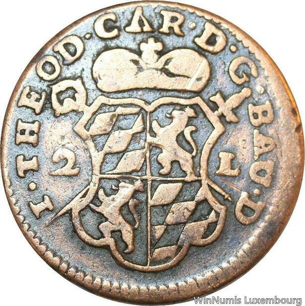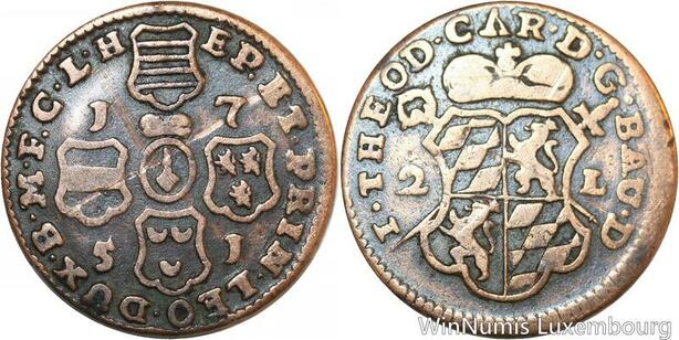 R9929 Feodal Netherlands Liège 2 Liards Jean Théodore de Bavière 1751