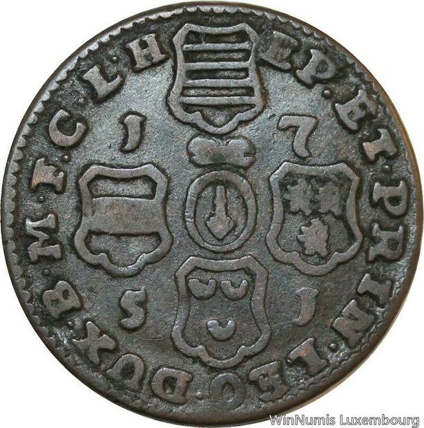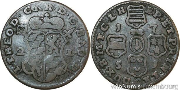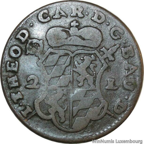 R9932 Rare Feodal Netherlands Liège 2 Liards Jean-Théodore de Bavière 1751