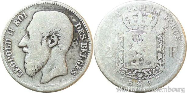 R9937 Belgium 2 Francs Léopold II type Wiener 1867 Silver -> Make Offer