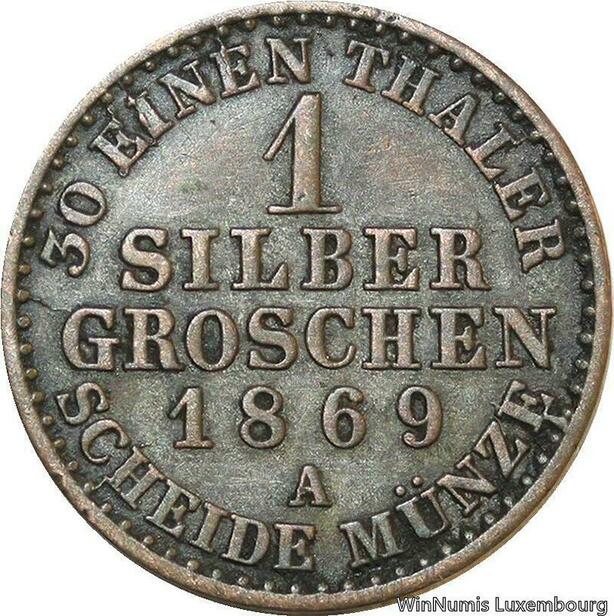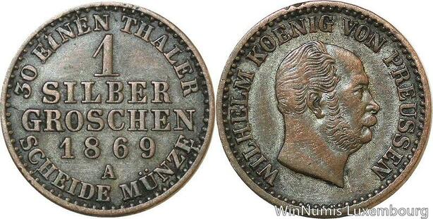 R9956 German States Prussia 1 Silber Groschen Wilhelm I 1869 A Berlin Argent