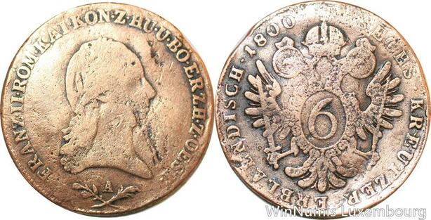 R9960 Austria Habsburg 6 Kreutzer Franz II 1800 A Vienna -> Make Offer