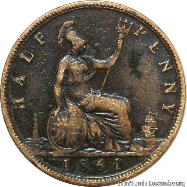 R9968 United Kingdom 1/2 Penny Victoria 1861 -> Make Offer
