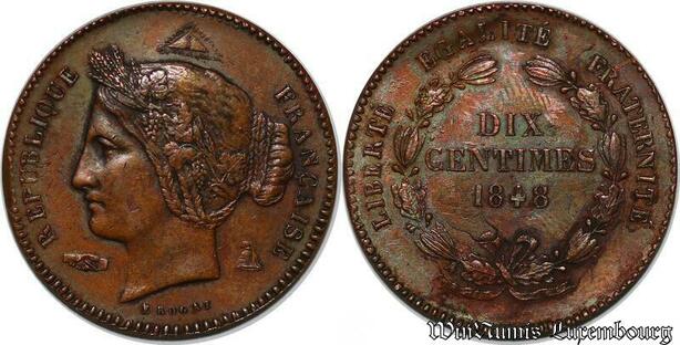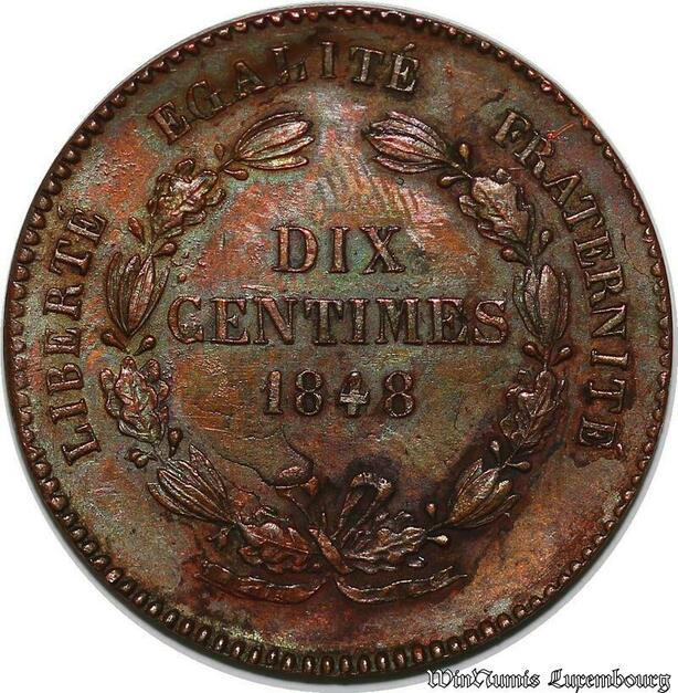 S1082 Rare France 10 Centimes Concours Essai Rogat 1848 AU -> Make offer