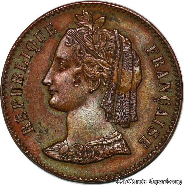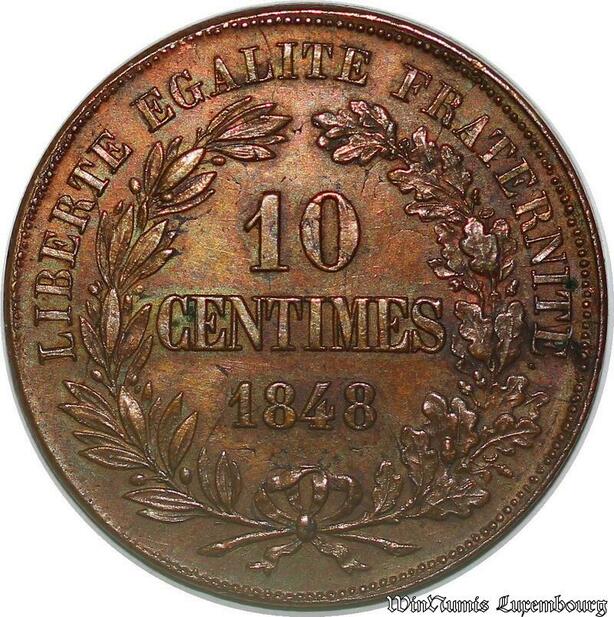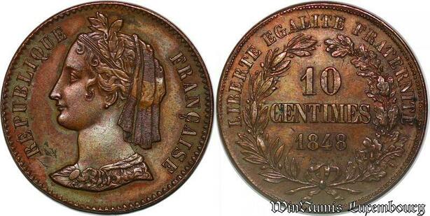 S1088 Rare France 10 Centimes Concours Essai Rogat 3ème prix 1848 PCGS AU58