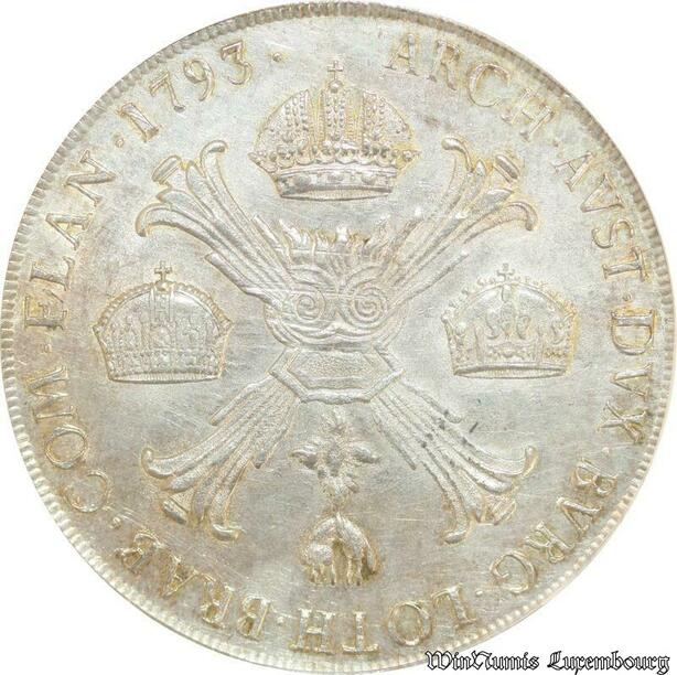 S1096 Rare Italy Habsburg Kronenthaler 1793 Milan PCGS AU58 Lustre -> Make offer